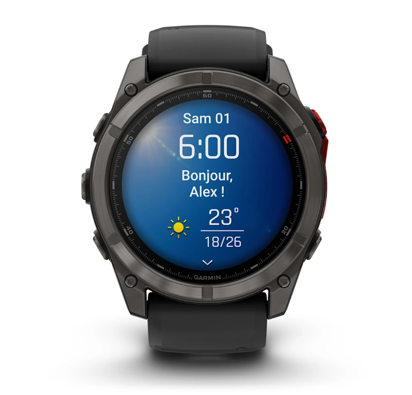 | Autonomie de la batterie | Montre connectée : jusqu’à 10 jours (4 jours avec l’écran activé en permanence) Mode économie d’énergie : jusqu’à 14 jours GPS uniquement : jusqu’à 44 heures (18 heures avec l’écran activé en permanence) Tous les systèmes satellitaires : jusqu’à 37 heures (16 heures avec l’écran activé en permanence) Tous les systèmes satellites + multibandes : jusqu’à 34 heures (15 heures avec l’écran activé en permanence)* Tous les systèmes satellites + multibande + LTE Livetrack : jusqu’à 17 heures (10 heures en mode toujours activé)* Tous les systèmes satellites + multibande + musique : jusqu’à 19 heures (11 heures en mode toujours activé)* Tous les systèmes satellites + multibande + musique + LTE Livetrack : jusqu’à 13 heures (9 heures en mode toujours activé)* GPS batterie maximum : jusqu’à 53 heures GPS expédition : jusqu’à 8 jours *En cas d’utilisation normale avec la technologie SatIQ |